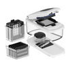 8-in-1 interchangeable blades (1/4" dicer, 1/2" cutter, shredder, etc.)