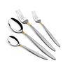 Indulge in the art of sophisticated dining with this exquisite 48-piece Gold Silver Cutlery Set. Designed to impress, each piece features a radiant gold finish that brings a touch of luxury and elegance to any table. Perfect for intimate dinners, lavish gatherings, and everything in between.