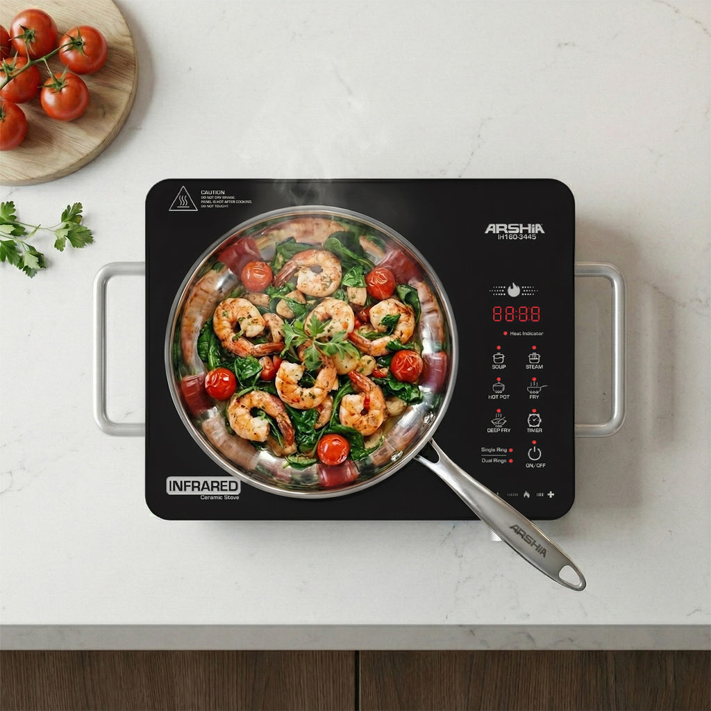 The Arshia Infrared Hob is a compact and efficient cooking solution designed for everyday use. Featuring infrared heating technology and a high-strength ceramic glass surface, it delivers fast and consistent heat while remaining compatible with a wide range of cookware. Its sleek design and simple controls make it suitable for both home kitchens and additional cooking spaces.